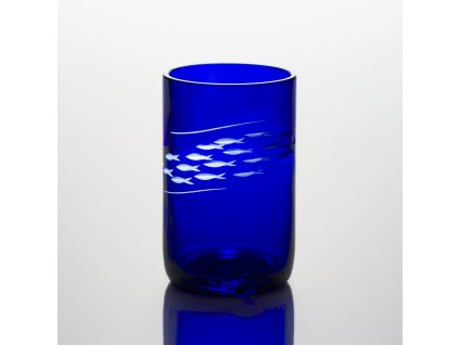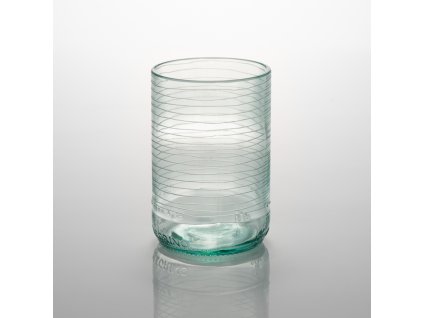 Unikátní ručně broušená sklenička, vytvořená z upcyklované láhve od rumu, s elegantně zataveným okrajem a precizně vybroušenými vlnami.