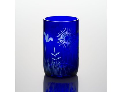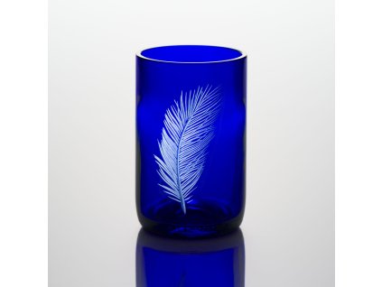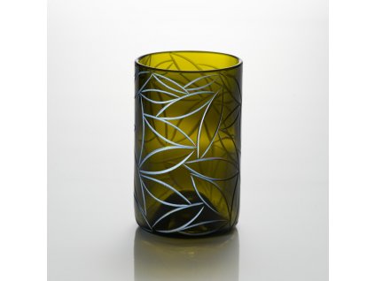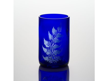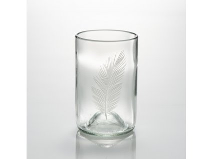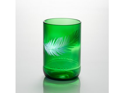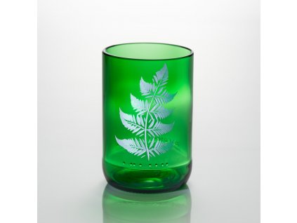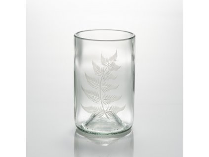 Jedinečná ručně broušená sklenička z vinné lahve s okrajem pečlivě zataveným a s jemně vybroušenou kapradinou.