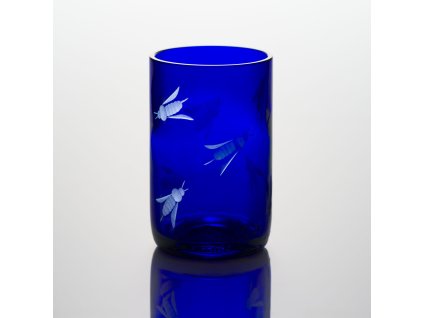 Medově sladká ručně vybroušená sklenička se zataveným okrajem celá posetá včelkama.