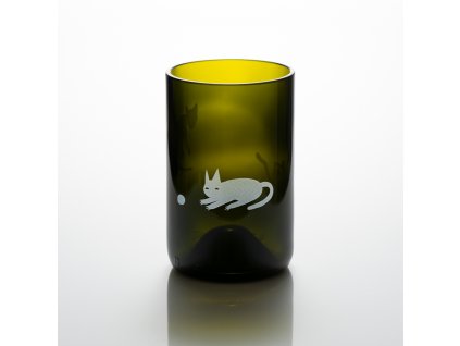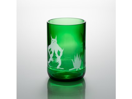Upcycled glass made from bottle of mineral water or wine with sealed edge, and with sandblasted motif of the devil's joy. With respect for nature, it...